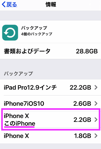 「バックアップ」にある「このiPhone」と表示されているものをタップします。