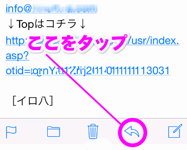 迷惑メールを受信したら、画面下にある矢印ボタンをタップします。