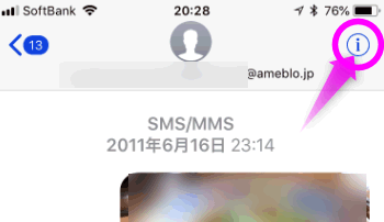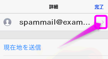迷惑メール・スパムメールの右上にある「 i 」のタップします。