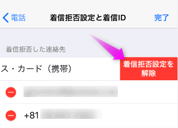 これで着信拒否を解除できました。