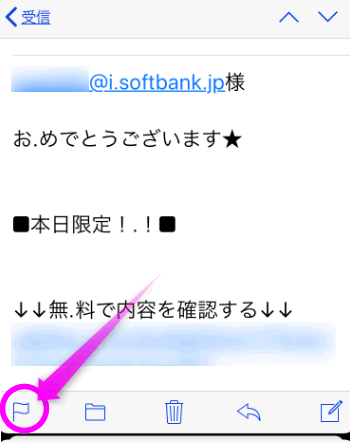 の方に届くスパムメールの拒否の仕方は、拒否したいメールを開き、左下にある旗のようなアイコンをタップします。
