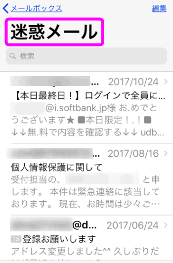 ソフトバンクのiPhone 迷惑メールの拒否