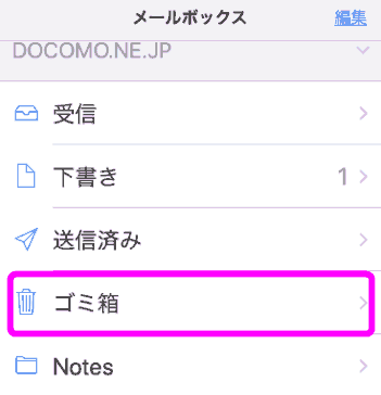 ただし、実際には「ゴミ箱」と呼ばれるメールボックスに移動しただけなので、完全にiPhone上から削除したいときは、「ゴミ箱」を開いて削除してください。