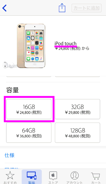 iPod touchは最も安い16GBの製品で、税別24,800円で販売されています。