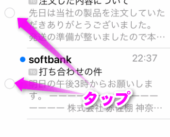 チェックボックスが表示されるので、既読にしたいメールや削除したいメールをタップしていきます。