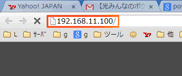 ブラウザを立ち上げ、URL入力欄に「192.168.11.100/と入力します。