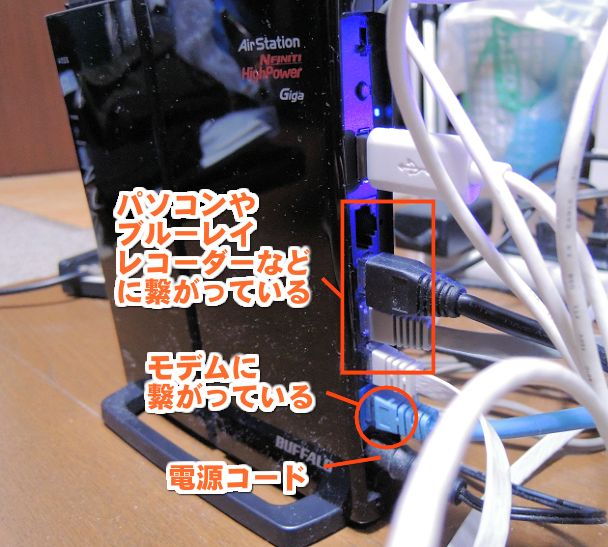 モデムと違い、裏側のLANケーブルを差し込む穴がいくつもあると思います。