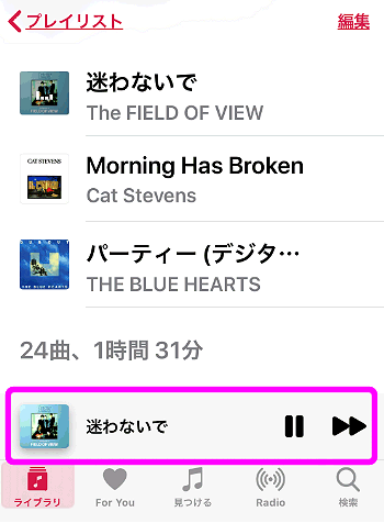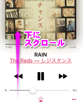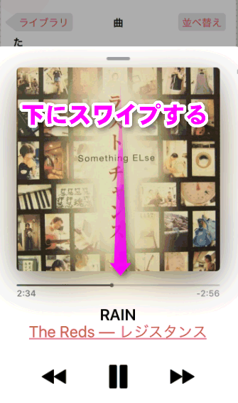なお、先程のプレイリストの画面に戻るには、この画面で下にスワイプします。