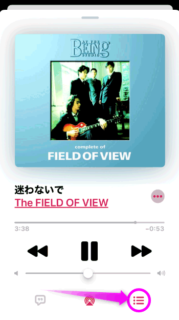 このような画面の場合は、一番下の再生中の曲名をタップします。
