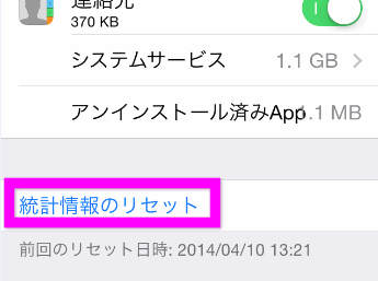 さらに下にスクロールしていくと、一番下に「統計情報のリセット」という項目があるので、ここをタップします。