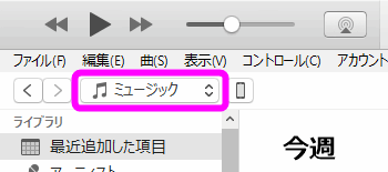 iTunesの左上にある「ミュージック」という部分をクリックし・・・