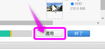 最後にiTunesの右下にある「適用」をクリックすると同期が開始されます。