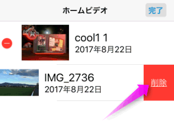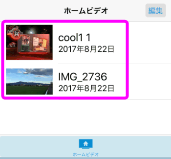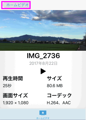 左上の「ホームビデオ」をタップすると、先程の動画の一覧画面に戻ります。