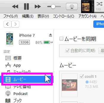 iPhoneへの動画の転送は、コピーと言うよりは「同期」と呼ばれる方法で転送させます。