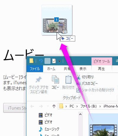 エクスプローラー上で、iPhoneに転送させたい動画を選択します。(複数の動画でもOKです)