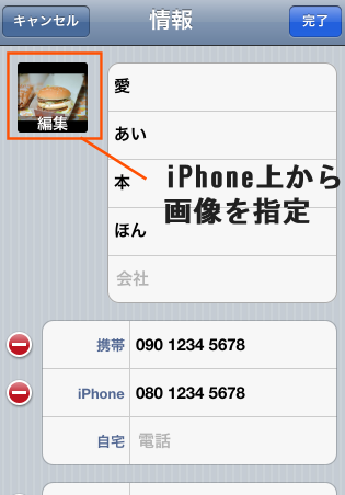 今度は、iPhone上で作成したデータに、iPhone上で画像を指定してみました。