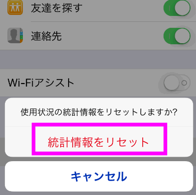 確認画面が出るので、もう一度「統計情報のリセット」をタップします。