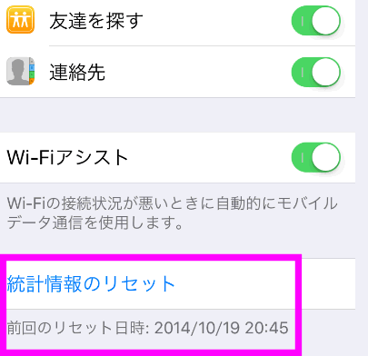 一番下までスクロールすると、「統計情報のリセット」という項目があるので、リセット(0にする)したい場合は、ここをタップします。