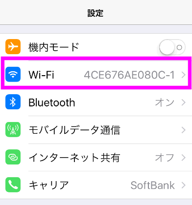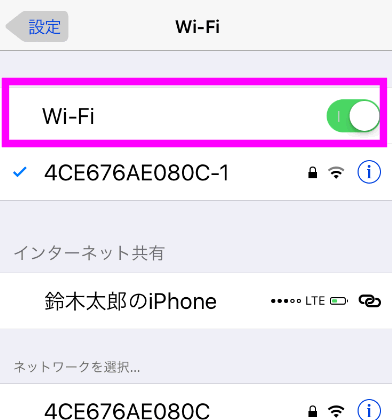 Wi-Fiをオン(黄緑色)にしておきます。