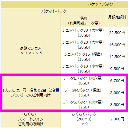 ドコモやau、SoftBankのiPhoneのパケット定額料金は契約するパケットプランによって変わってくるのですが、最も契約が多いのが、ドコモだと「データMパック(5GB)」や「データLパック(8GB)」だそうです。