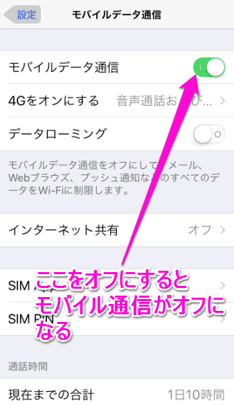 ここをオフにすると、Wi-Fi以外では通信できなくなります。