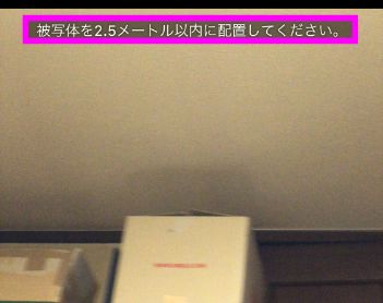 例えば近すぎると、このように「離れてください」と表示されてうまく効果が出ません。