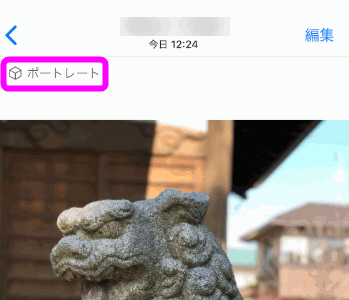 ポートレートで撮影した写真は、このように「写真」で表示させた時に「ポートレート」と記載されます。