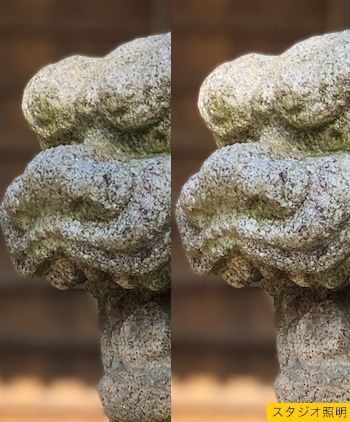 屋外写真だとあまりわかりづらいのですが、「スタジオ照明」で室内で撮影すると、ストロボをたいたような写真になります。