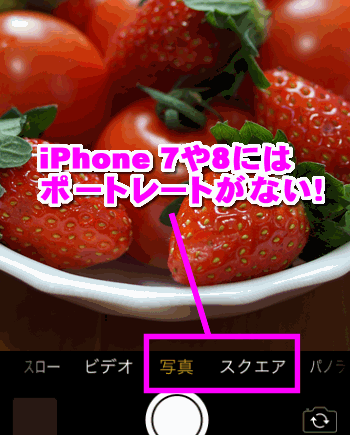 残念ながらiPhone7やiPhone 8、そしてiPhone SEには「ポートレート」が搭載されていません。