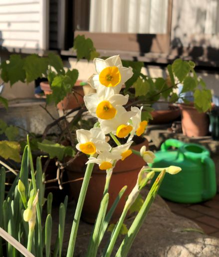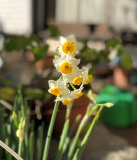 きれいに背景がぼやけ、手前のスイセンが浮き上がって見えます。