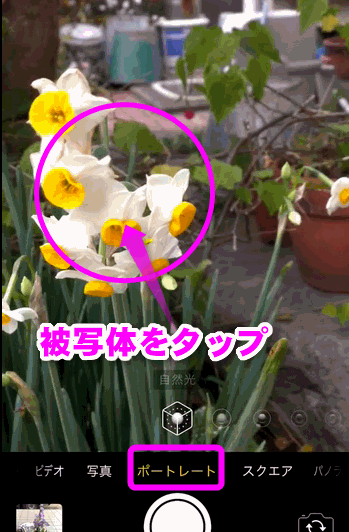 被写体をタップするとリアルタイムで背景をぼかしてくれます。