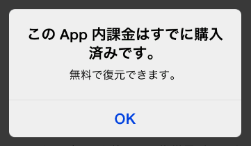 なお、購入途中で通信が途絶えたり、エラーになった場合、もう一度購入手続きをすると「すでに購入済み」になって、二度払いしてしまうことはありません。
