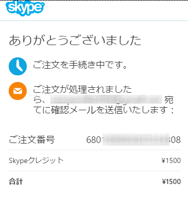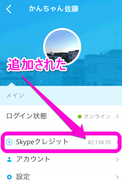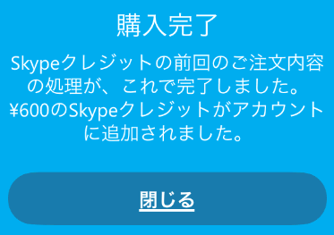 Skypeクレジットを確認してみると、金額が追加されていました。