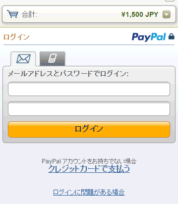 PayPalに登録したメールアドレスとパスワードでログインします。