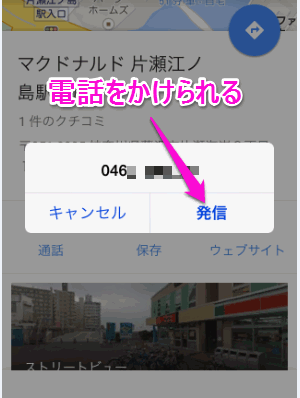 ブラウザ版のgoogleマップでは「通話」というボタンが表示され、タップすると電話をかけることが出来ます。