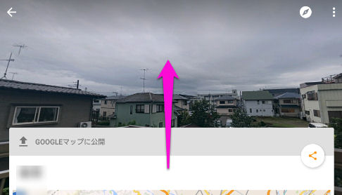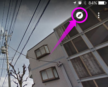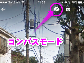 コンパスモードにすると、スマホを向けた方向にストリートビューも追随してくれるモードです。
