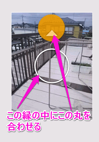 この白い円にオレンジ色の丸を重ねるようにすると、自動的に撮影されます。