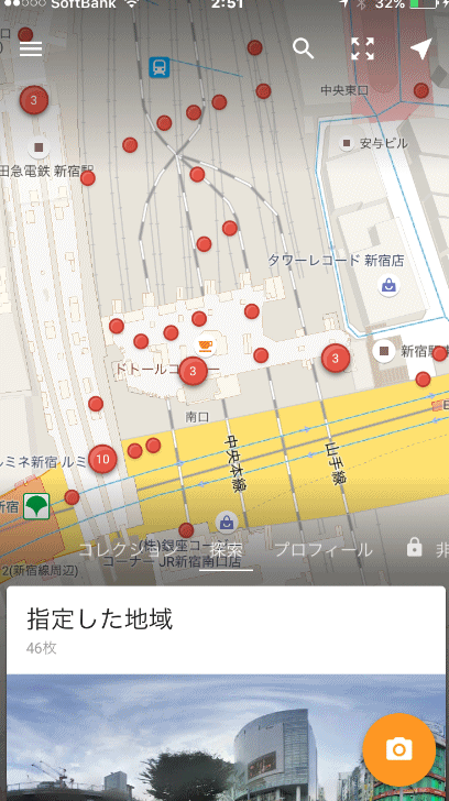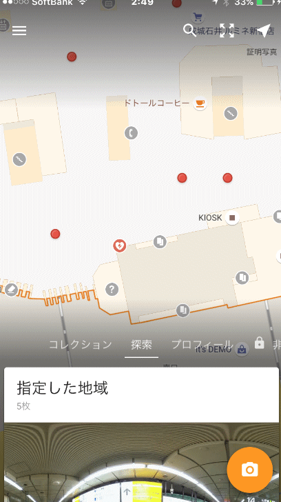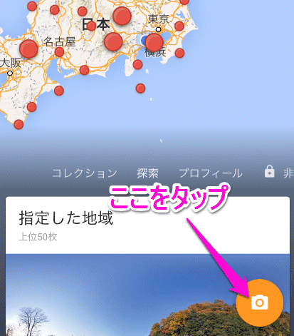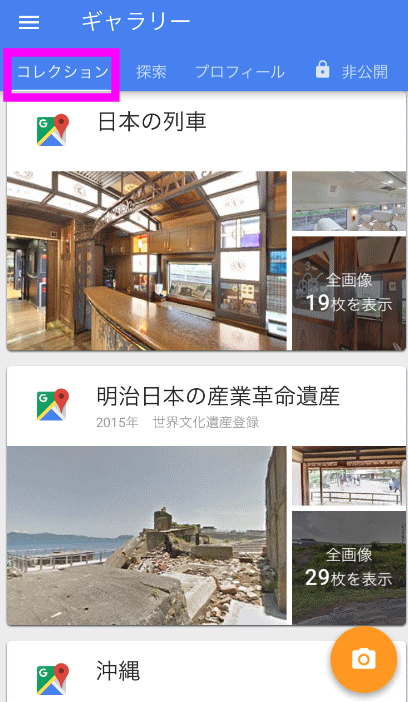 「コレクション」をタップすると、今が句の場所や人気スポットのストリートビューがいろいろ表示されます。