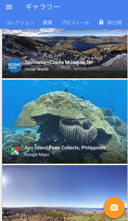 ストリートビューは後で紹介する「Googleマップ」でも見ることが出来るのですが、「ストリートビュー」アプリでは独自の機能として、有名な観光スポットなどを気軽に探すことが出来る「コレクション」があります。
