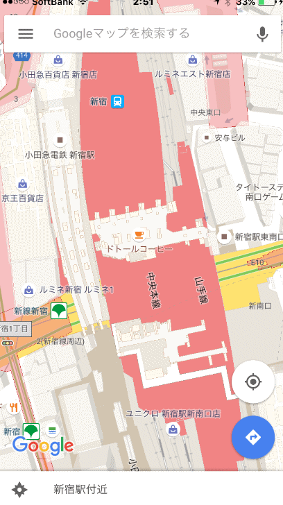 以下、iPhoneでGoogleストリートビューを見る方法です。