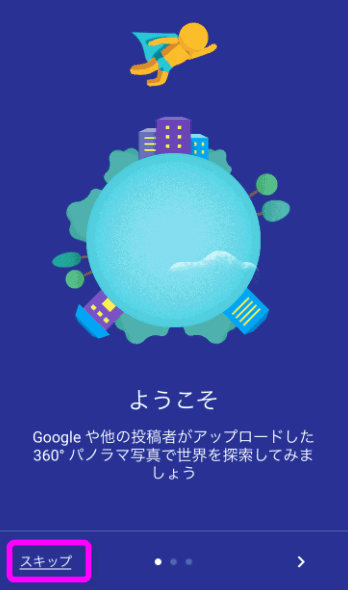 最初に起動したときだけ使い方が表示されるので、左下の「スキップ」をタップします。
