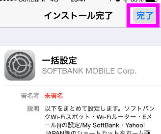 今回インストールするプロファイルは、ソフトバンクWi-Fiスポットの設定だけでなく、「 @i.softbank.jp 」のメール設定も自動で行われます。