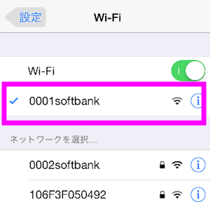 「 0002softbank 」という名前が表示されていて、チェックマークがついていれば接続しています。