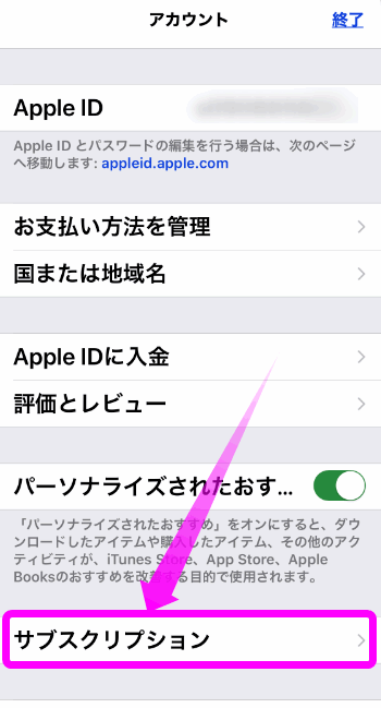 下のほうに「サブスクリプション」という項目があります。ここをタップ。