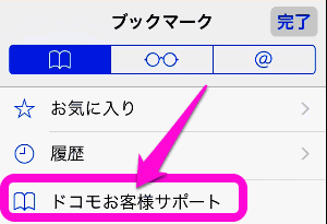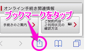 画面の下にある○で囲った部分(ブックマーク)をタップします。