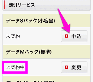 まずは変更したいパケットプランに表示されている「申込」ボタンをタップします。
