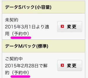 再びマイドコモに戻ると、パケットプランの変更が予約されていました。