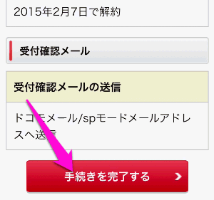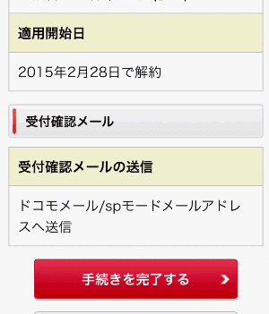 確認ページになるので、下までスクロールし、「手続きを完了する」をタップします。