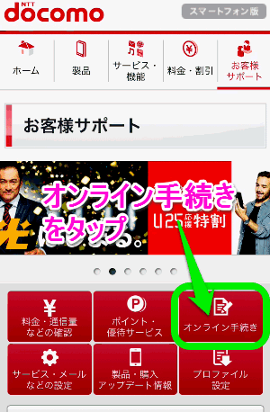 マイドコモの「ドコモオンライン手続きの一覧を見る」をタップします。