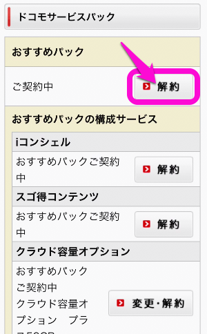 さて今度は、いらないオプションを解約する方法を紹介します。